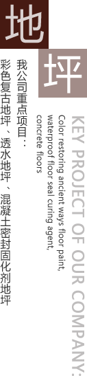 公司主要工程項目有彩色生態(tài)混凝土透水地坪,彩色復古地坪,藝術壓花地坪,混凝土密封固化劑地坪,環(huán)氧砂漿地坪,環(huán)氧防靜電地坪,環(huán)氧防滑紋理地坪,環(huán)氧玻璃鋼地坪,金剛砂耐磨地坪,水泥基彩色地坪,舊地面的修補,空鼓的治理等。